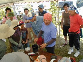 ![]() バックパッカー、シェルパ斉藤さんの ワンバーナー・クッキング教室。 |